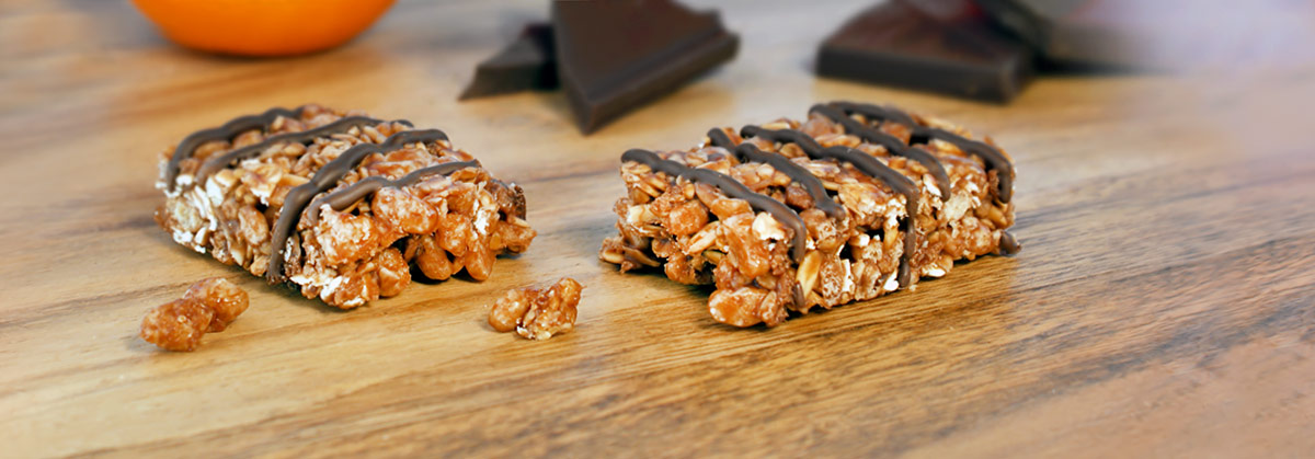 Schokolade-‚Drizzle’ Produktbeschreibung: Müsliriegel mit einem ‚Drizzle’ aus Bitterschokolade (und Orangenstücken) Alternativen: ‚Drizzle’ aus Milch- oder weißer Schokolade, verschiedene Frucht- und Nusssorten Schokolade-‚Drizzle’ Einzelansicht des Fotos snack & back Folder