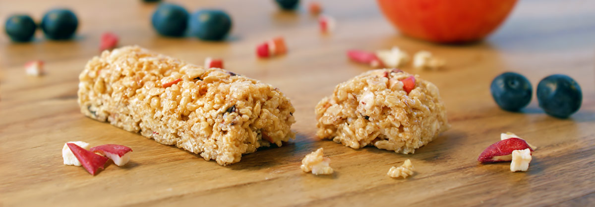 Product description: profiled multigrain flakes bar (with blueberry and apple pieces) Alternatives: all at Snack & Back available chocolate and compound styles, fruit and nut variants